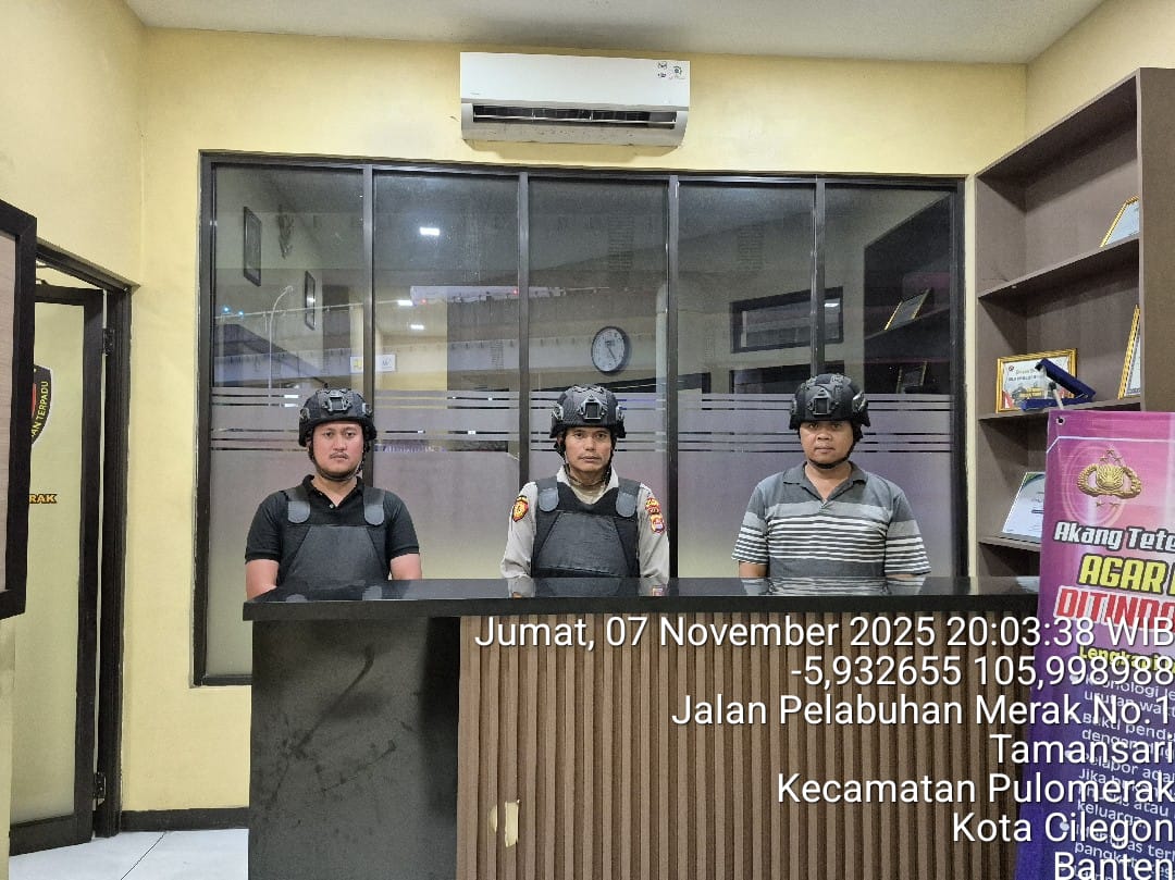 Cilegon - Personel piket jaga Polsek Kskp Merak Polres Cilgon Polda Banten melaksanakan siaga 1 Polsek pelaksanaan Sispam Mako oleh piket siaga dipimpin oleh Kspk Polsek Kskpy Merak Polres Cilegon Polda Banten, Jumat (07/11/2025).