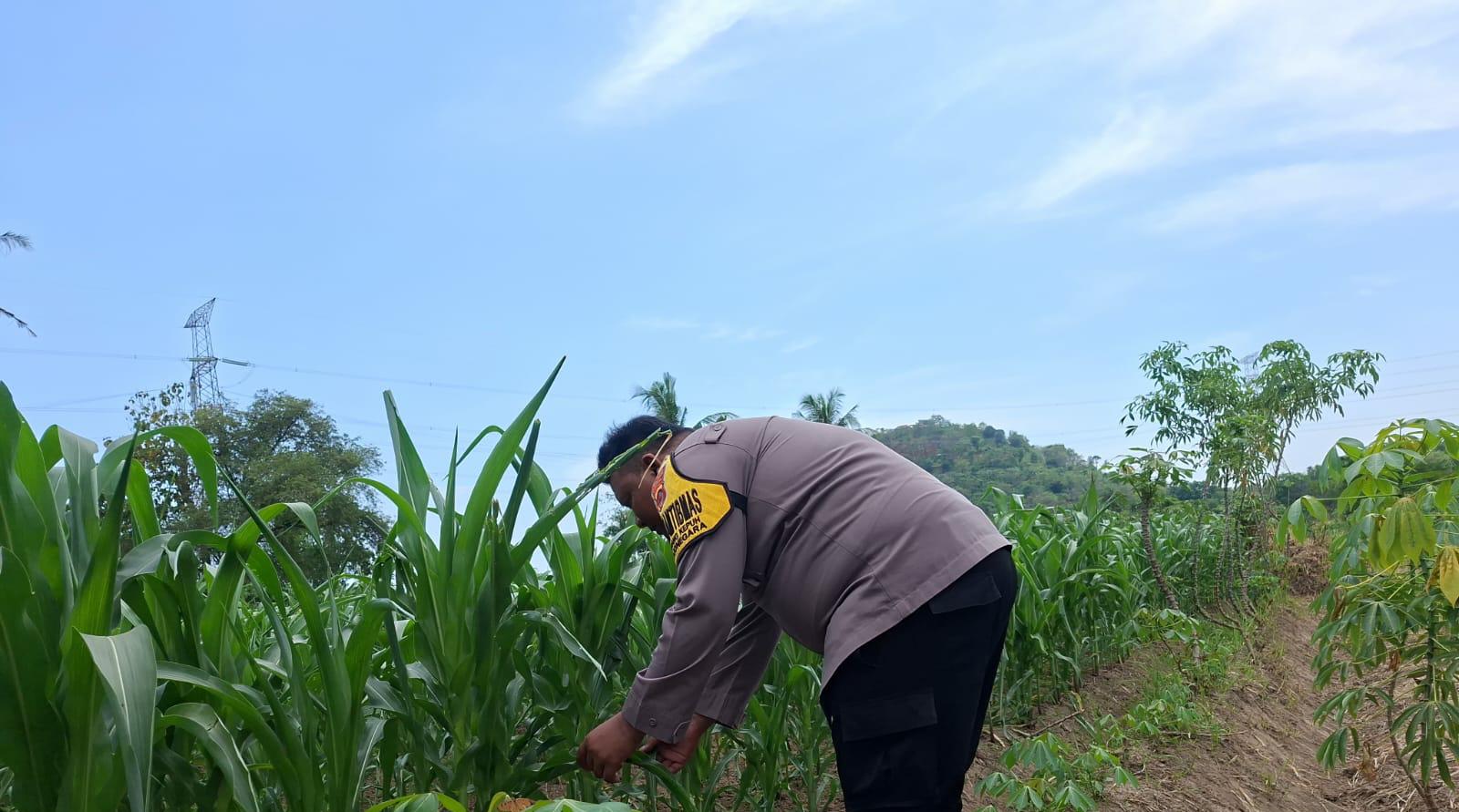 Anggota Bhabinkamtibmas Langsung Cek Tanaman Jagung, Sebagai Wujud Dukung Ketahanan Pangan