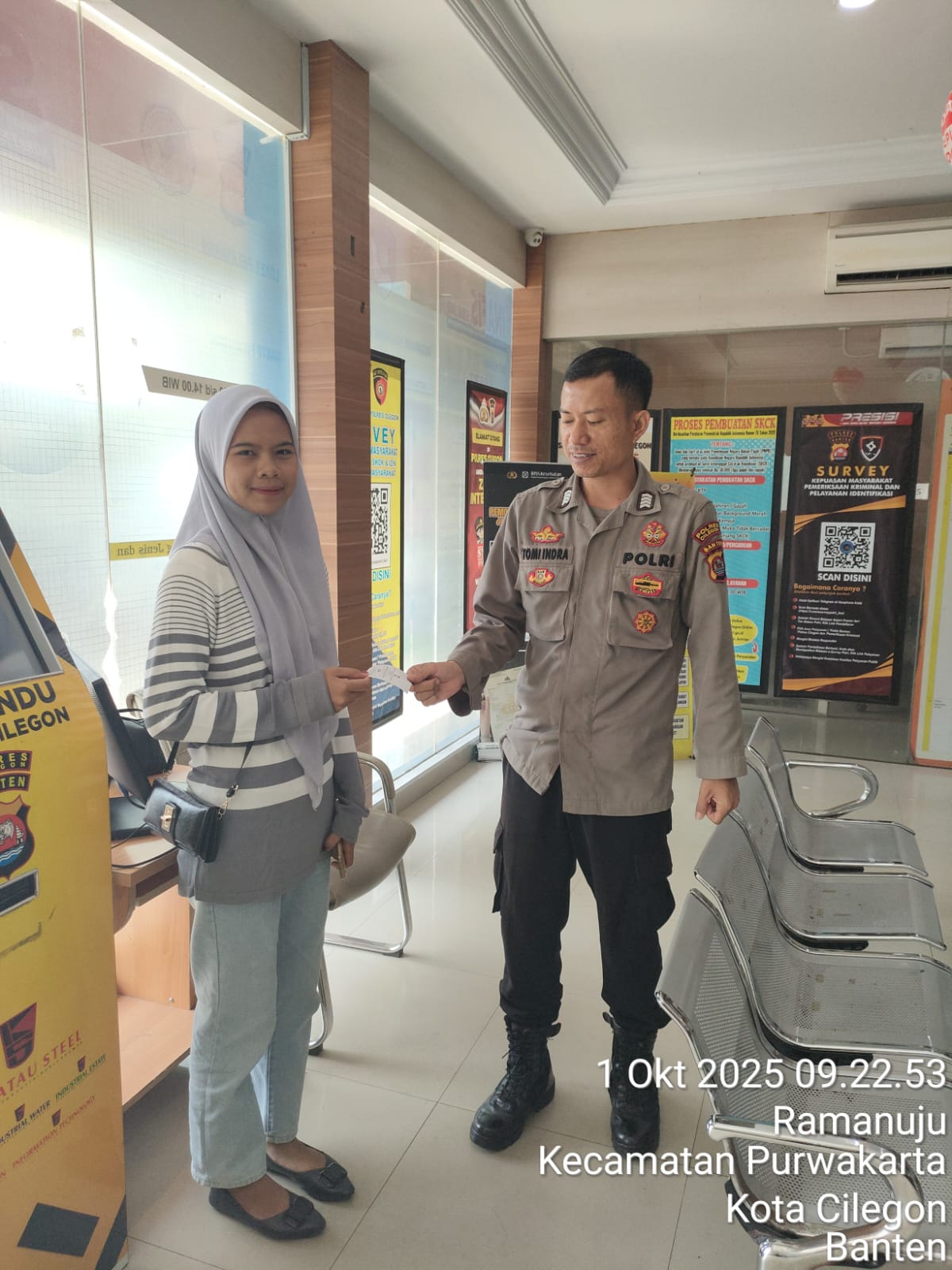 AnggotaSPKT Memberikan PenyuluhanKepada Masyarakat Terkait Tugas Pokok dan Fungsi (Tupoksi) SPKT
