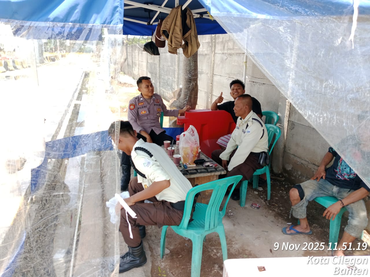 Kapolres Cilegon Polda Banten AKBP Martua Raja Taripar Laut Silitonga Melalui Kapolsek Kskp Polres Cilegon Polda Banten AKP Gusti Almasri P mengatakan Bhabinkamtimbmas Polsek Kskp Rutin menyambangi anggota Scurity dan memberikan himbauan agar para anggota Scurity bisa melaksanakan tugas menjaga keamanan di Kawasan Pelabuhan Merak.