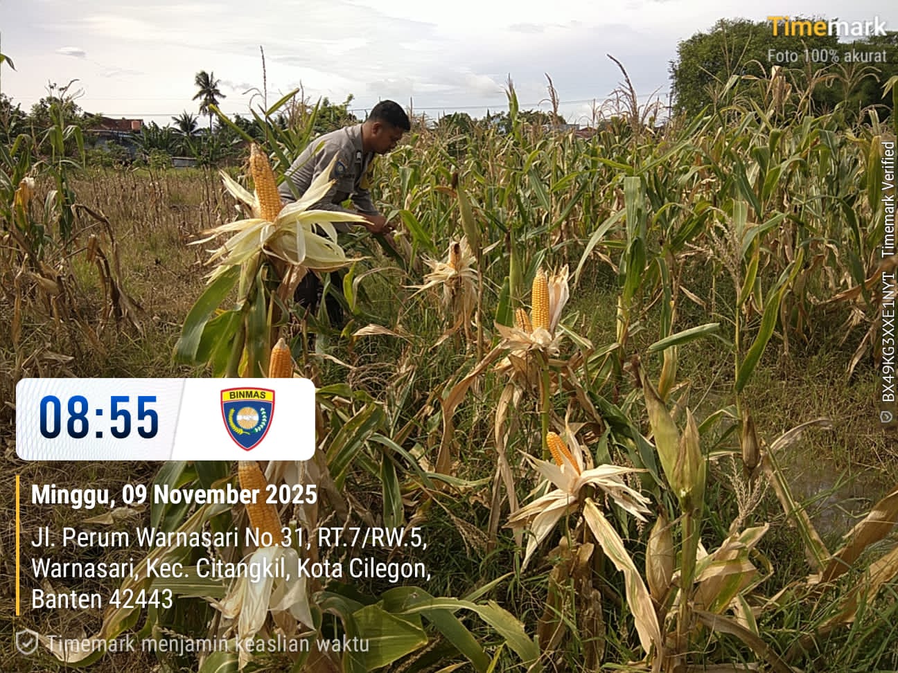 Cilegon - Dalam rangka memberikan dukungan kepada Pemerintah terkait Ketahanan pangan, Bhabinkamtibmas Ciwandan Polres Cilegon Polda Banten melaksanakan Implementasikan Program Asta Cita Presiden dengan fokus pada sektor Pertanian tanaman Jagung dilingkungan Binaan, Minggu (09/11/2025).