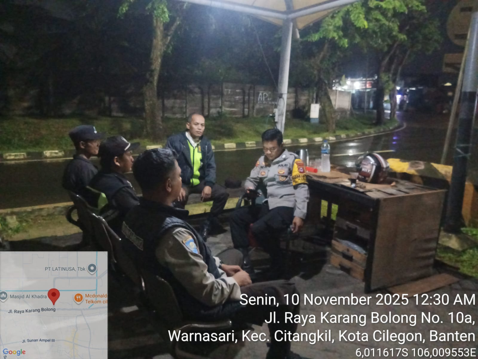 Cilegon - Upaya mengantisipasi aksi kejahatan pada daerah binaan dan memberikan rasa aman dan nyaman kepada warga binaan, Bhabinkamtibmas Polsek Ciwandan Polres Cilegon Polda Banten sambangi warga pada malam hari, Swnin (10/11/2025).
