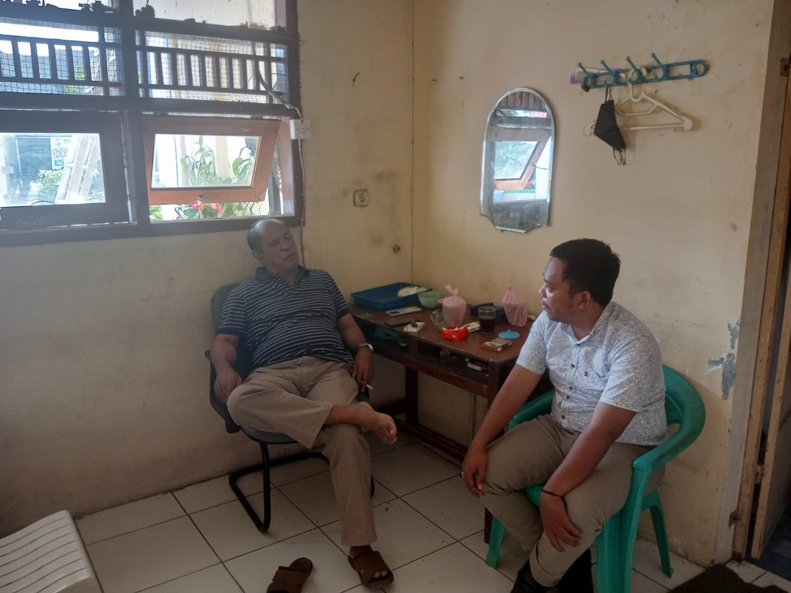 Personil sat intelkam melakukan koordinasi dengan tokoh pemuda kec. Purwakarta kota cilegon.