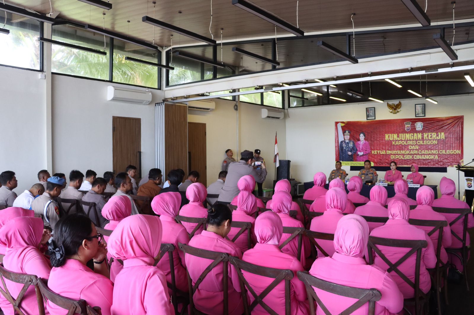 Cilegon – Dalam rangka memperkuat kinerja organisasi serta meningkatkan pelayanan publik di jajaran kepolisian, Kapolres Cilegon AKBP Dr. Martua Raja Taripar Laut Silitonga, S.H., S.I.K., M.Si., bersama Ketua Bhayangkari Cabang Cilegon Ny. Cindy Martua Silitonga, melaksanakan kunjungan kerja ke Polsek Cinangka pada Selasa (11/11/2025), bertempat di Kadena Glamping Dive Resort, Cinangka.