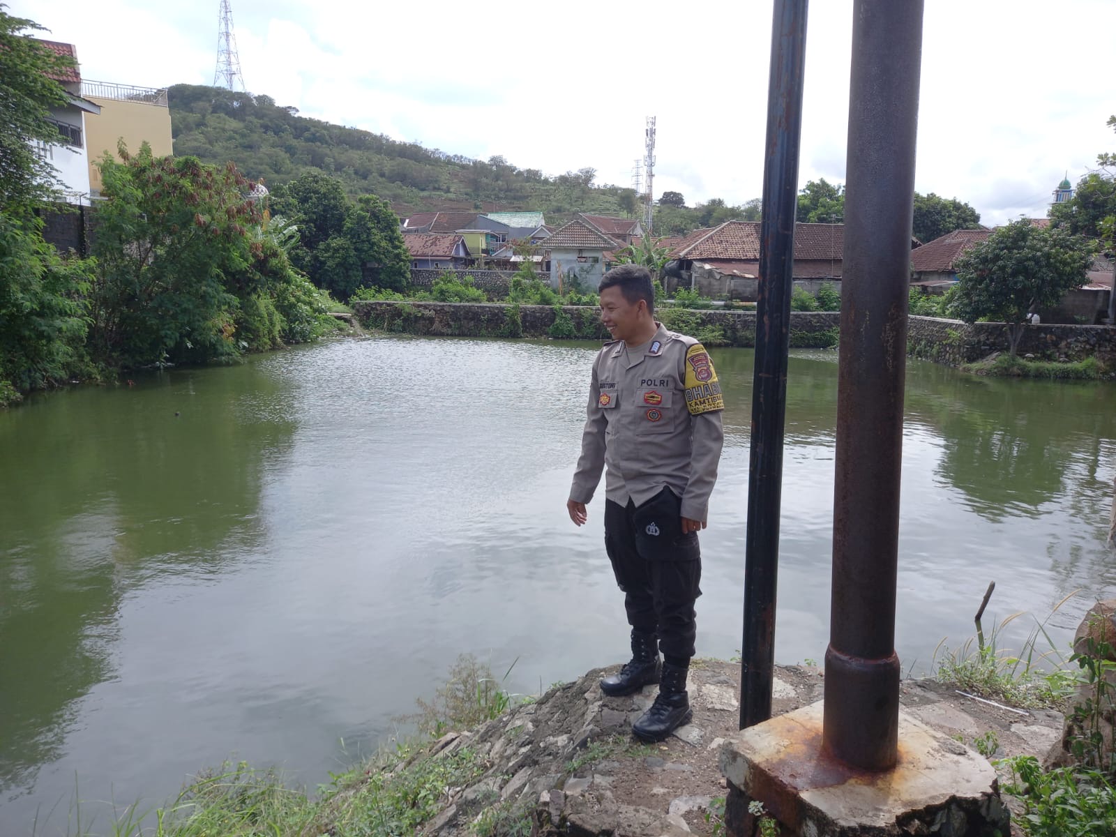 POLRES CILEGON-Polda Banten. Bhabinkamtibmas Bripka Agustoni melaksanakan monitoring kondisi waduk di wilayah Kelurahan Kotabumi, Kecamatan Purwakarta, Kota Cilegon, pasca hujan deras yang melanda. Kegiatan ini dilakukan di lingkungan Serdag, Penyairan untuk memastikan keamanan dan kondisi waduk tetap stabil.Rabu.(12-11-2025).