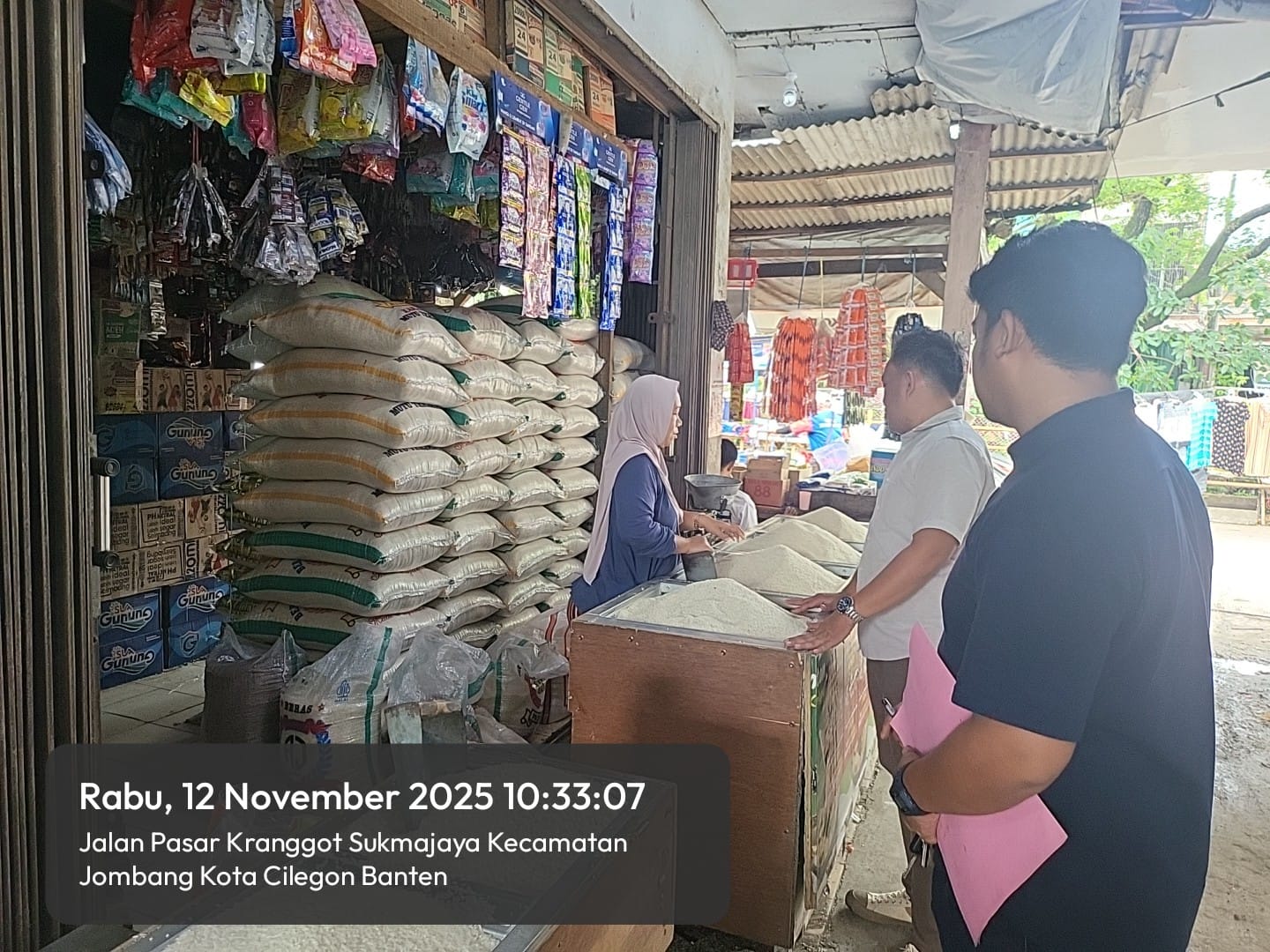 Cilegon – Unit II Satreskrim Polres Cilegon Polda Banten melakukan pengecekan terhadap persediaan dan harga bahan pangan di Pasar Kelapa, Cilegon, di tahun 2025. Rabu tanggal 12 November 2025.