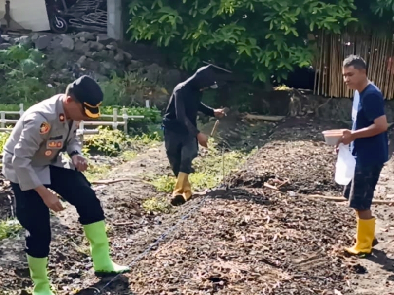 Cilegon ~ Kapolsek Pulomerak Polres Cilegon Polda Banten dalam pelaksanaan tugasnya melakukan kegiatan bersama kelompok tani kebon pisang Kel. Lebakgede kec. Pulomerak, Kamis 13/11/25