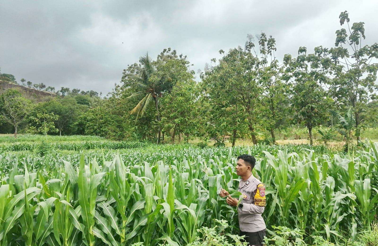 Pastikan Pertumbuhan Jagung, Anggota Bhabinkamtibmas Polsek Bojonegara Cek Secara Rutin Pertumbuhan Tanaman Jagung Pipil