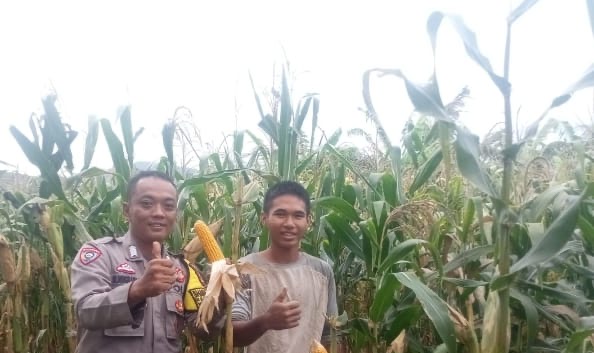 Bhabinkamtibmas Kel Purwakarta Dampingi Panen Jagung Hibrida di Kaligandu, Purwakarta Polres Cilegon