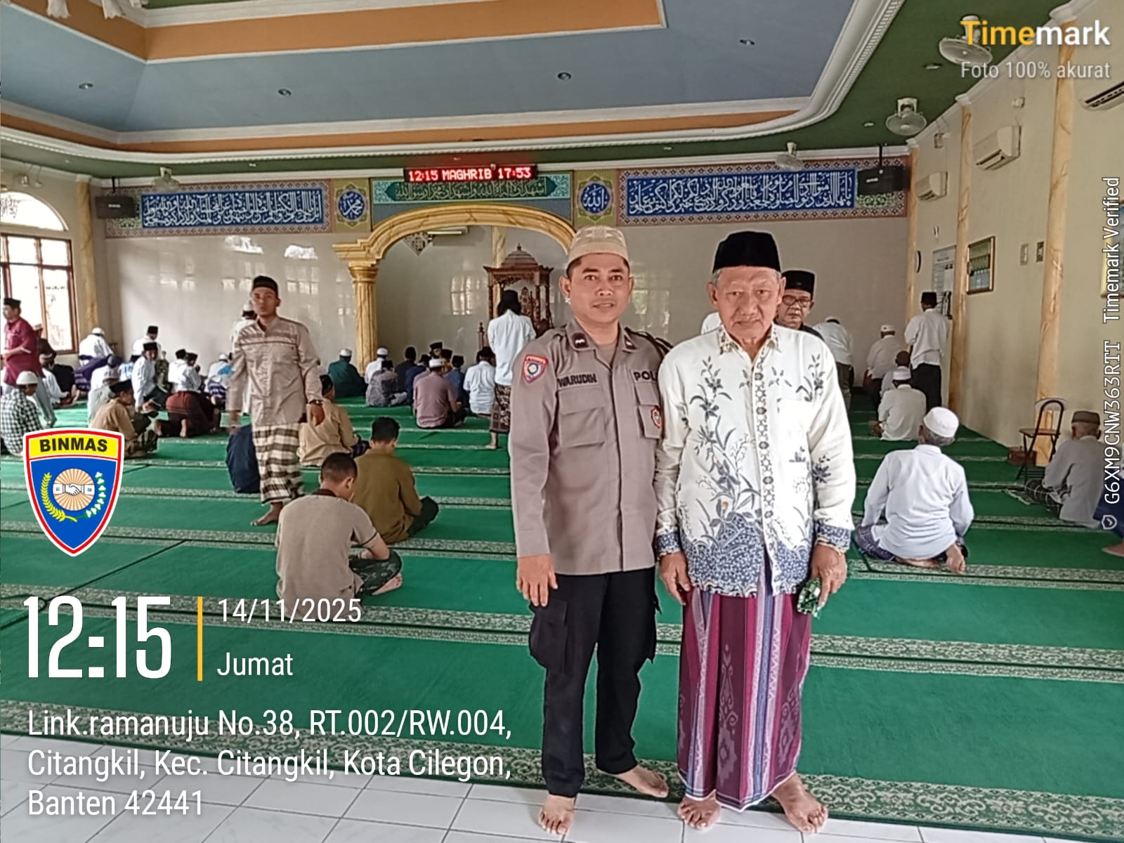 Cilegon - Dalam Rangka Implementasi Program Kapolda Banten Yaitu Sholat Jum’at Keliling Dan Berjama’ah Serta Memakmurkan Masjid Bhabinkamtibmas Polsek Ciwandan Polres Cilegon Polda Banten Sholat Berjama’ah dan Bersilaturahmi Bersama masyarakat sebagai upaya meningkatkan Ukhuwah Islamiyah dalam menjalin silaturahmi dan membangun komunikasi yang baik,Jum’at (14/11/2025).