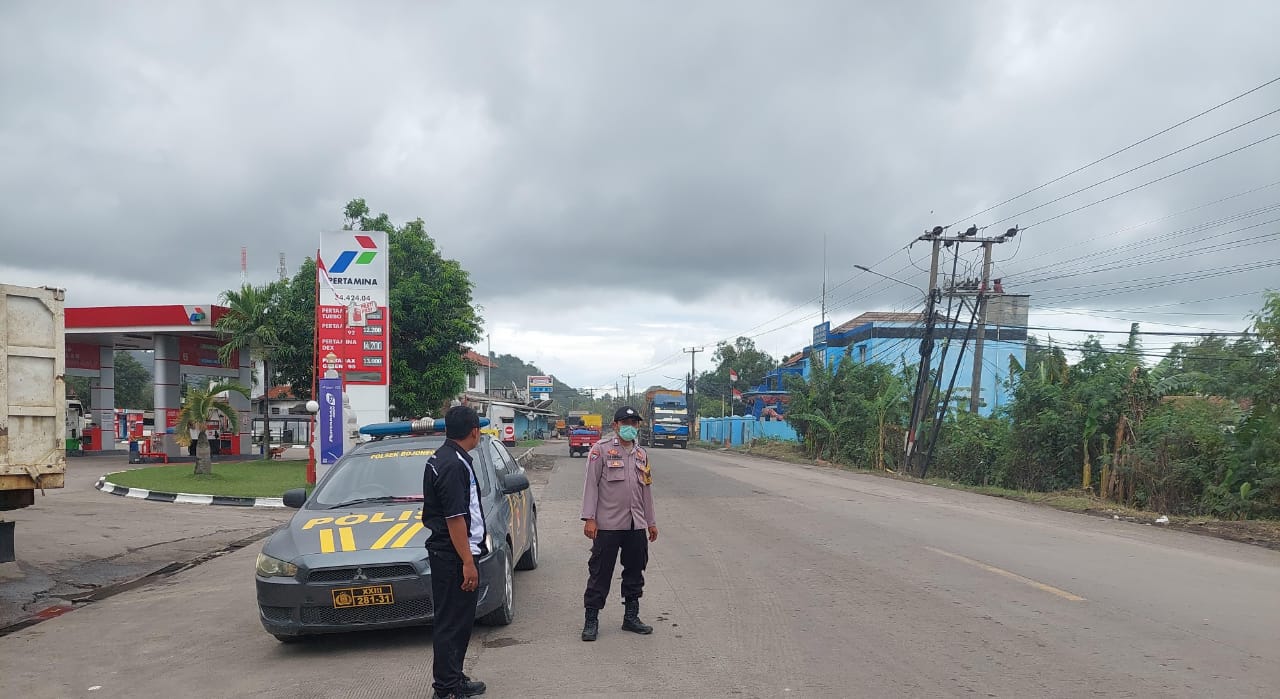 Ciptakan Situasi Lalu Lintas Aman, Anggota Polsek Bojonegara Laksanakan Gatur Lalin Sore Hari di Depan SPBU Bojonegara