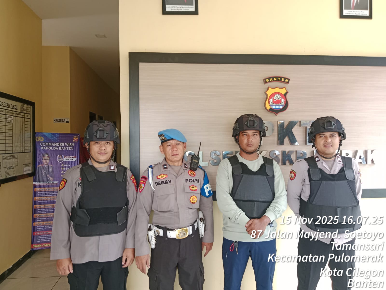 Cilegon - Personel piket jaga Polsek Kskp Merak Polres Cilgon Polda Banten melaksanakan siaga 1 Polsek pelaksanaan Sispam Mako oleh piket siaga dipimpin oleh Kspk Polsek Kskpy Merak Polres Cilegon Polda Banten, Sabtu (15/11/2025).