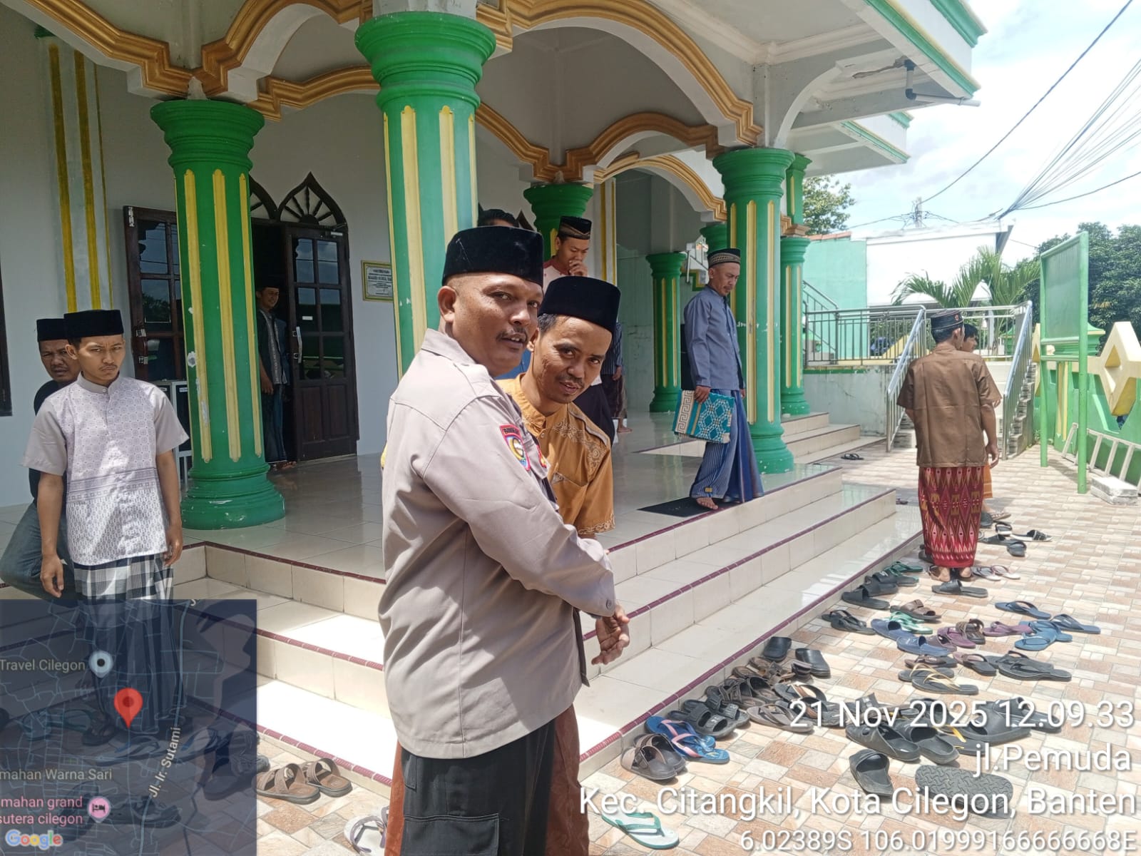 Cilegon - Bhabinkamtibmas Polsek Ciwandan Polres Cilegon Polda Banten Selesai melaksanakan Sholat secara berjama’ah dan Sampaikan Himbauan-himbauan Kamtibmas Kepada Masyarakat Jama'ah Yang ada Dimasjid, Jum'at (21/11/2025).