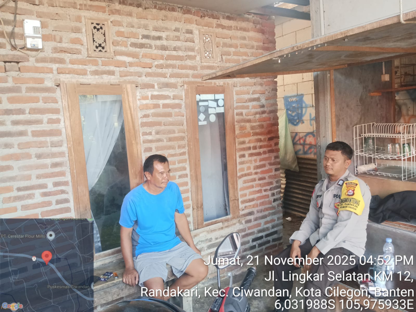 Cilegon - Bhabinkamtibmas Polsek Ciwandan Polres Cilegon Polda Banten Melaksanakan Sambang Dialogis Sambil Ngopi Bareng Warga sekaligus Bahas Ketertiban Dan Keamanan Lingkungan Binaan, Jum'at (21/11/2025).