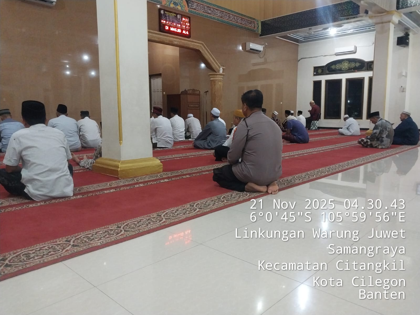 Cilegon - Dalam Rangka Implementasi Program Subuh Keliling Kapolda Banten Dan Kapolres Cilegon Polda Banten Bhabinkamtibmas Polsek Ciwandan Polres Cilegon Polda Banten melakukan Sholat Subuh Berjama’ah bersama warga masyarakat, Jum'at (21/11/2025).
