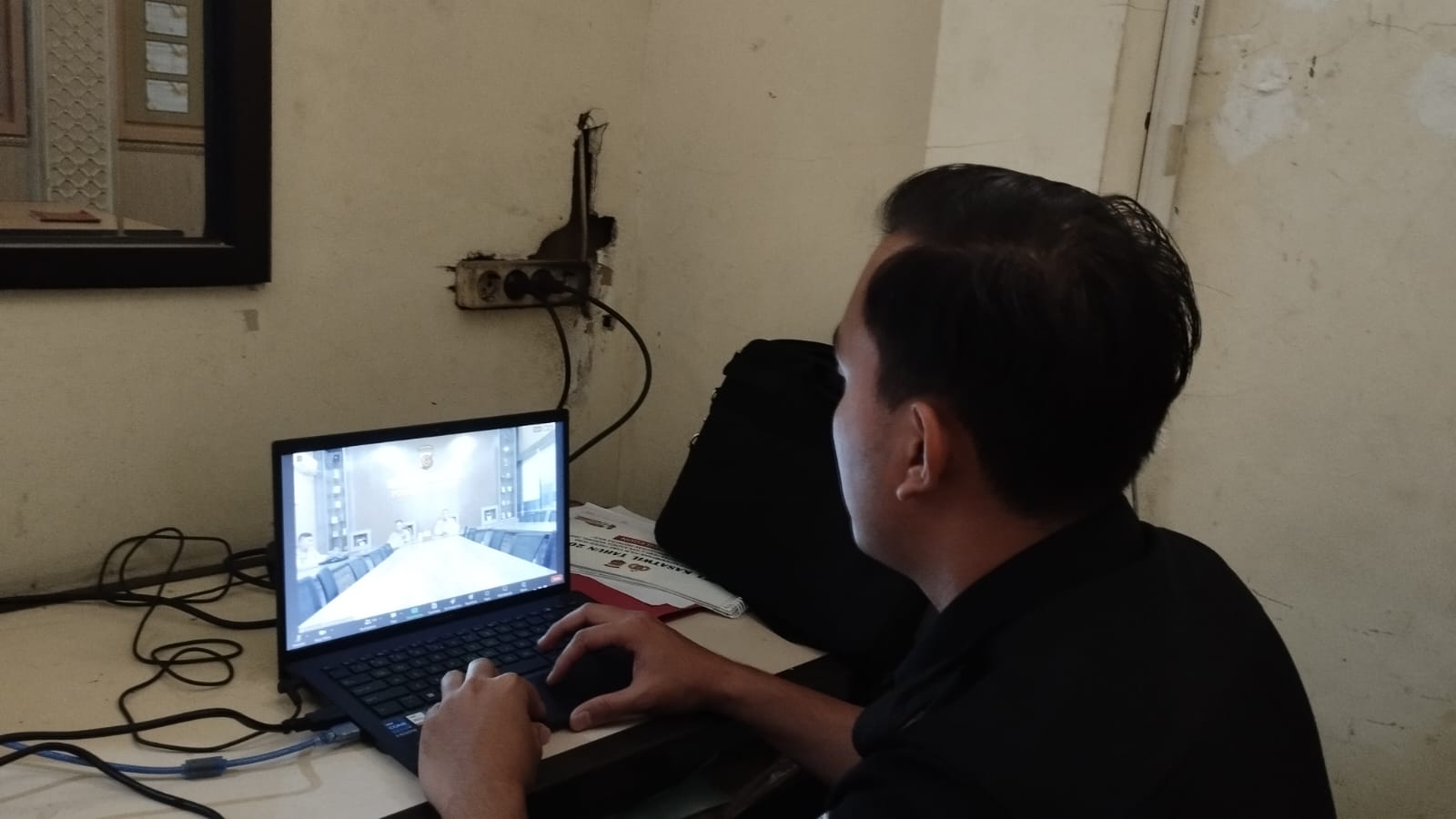 Peralatan Zoom Disiapkan dengan Teliti oleh Anggota TIK Polres Cilegon