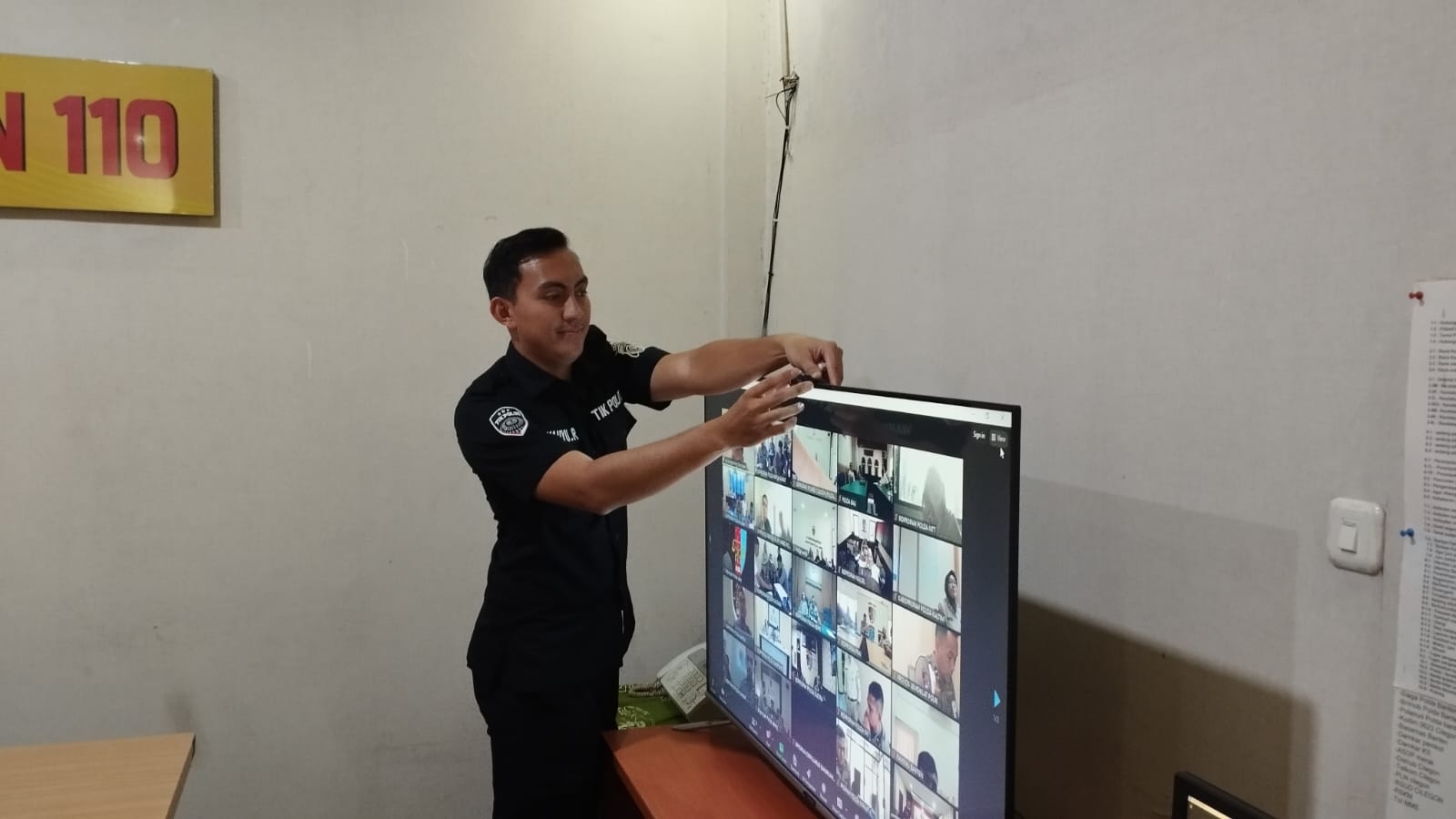 Anggota Tik Polres Cilegon Menyiapkan Sarana dan Prasarana Untuk Kegiatan Zoom meeting Dalam pelaksanaan kegiatan zoom meeting tersebut anggota TIK Polres Cilegon yang bertanggung jawab untuk menyiapkan peralatan zoom. Selain itu agar di tidak ada gangguan jaringan sebelum pelaksanaan anggota TIK melakukan pemeriksaan terhadap sarana dan prasarana tersebut . Satu jam sebelum kegiatan zoom meeting itu dimulai. Kapolres Cilegon AKBP. DR. MARTUA RAJA TARIPAR LAUT SILITONGA. melalui Kasi TIK IPTU Lukman menyampaikan bahwa “untuk menunjang kelancaran penyampaian informasi anggota TIk Polres Cilegon selalu memeriksa sarana dan prasarana tersebut, sebelum maupun pada saat pelaksanaan akan selalu di monitor”