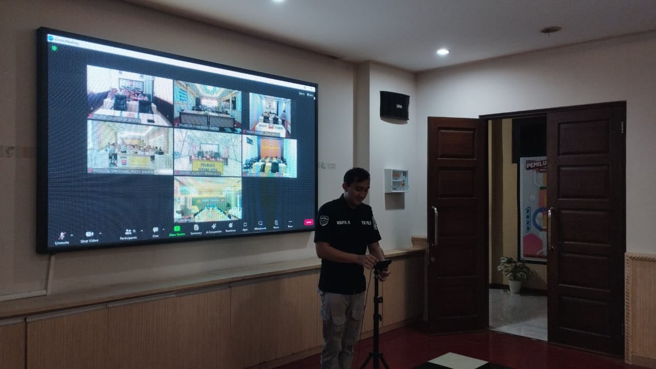Anggota Tik Polres Cilegon Menyiapkan Sarana dan Prasarana Untuk Kegiatan Zoom meeting Dalam pelaksanaan kegiatan zoom meeting tersebut anggota TIK Polres Cilegon yang bertanggung jawab untuk menyiapkan peralatan zoom. Selain itu agar di tidak ada gangguan jaringan sebelum pelaksanaan anggota TIK melakukan pemeriksaan terhadap sarana dan prasarana tersebut . Satu jam sebelum kegiatan zoom meeting itu dimulai. Kapolres Cilegon AKBP. DR. MARTUA RAJA TARIPAR LAUT SILITONGA. melalui Kasi TIK IPTU Lukman menyampaikan bahwa “untuk menunjang kelancaran penyampaian informasi anggota TIk Polres Cilegon selalu memeriksa sarana dan prasarana tersebut, sebelum maupun pada saat pelaksanaan akan selalu di monitor”
