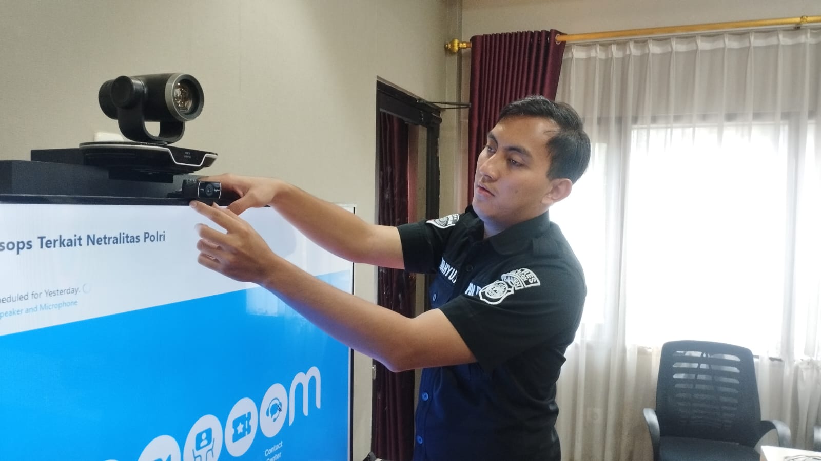 Peralatan Zoom Disiapkan dengan Teliti oleh Anggota TIK Polres Cilegon