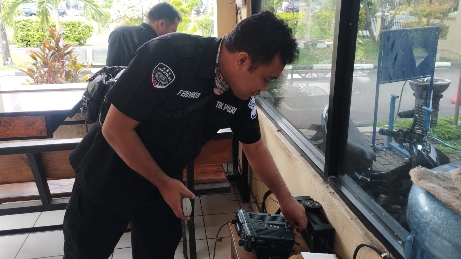 Anggota Tik Polres Cilegon Menyiapkan Sarana dan Prasarana Alkom Dalam pelaksanaan tugas tersebut anggota TIK Polres Cilegon yang bertanggung jawab untuk menyiapkan peralatan sarana alkom berupa handy talky. Selain itu agar di tidak ada gangguan pada jaringan, sebelum pelaksanaan anggota TIK melakukan pemeriksaan terhadap sarana dan prasarana tersebut . Satu jam sebelum sarana alkom digunakan. Kapolres Cilegon AKBP. DR. MARTUA RAJA TARIPAR LAUT SILITONGA. melalui Kasi TIK IPTU Lukman menyampaikan bahwa “untuk menunjang kelancaran penyampaian informasi anggota TIk Polres Cilegon selalu memeriksa sarana dan prasarana tersebut, sebelum maupun pada saat pelaksanaan akan selalu di monitor