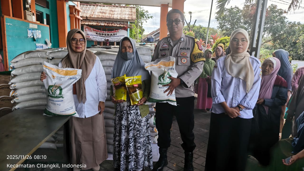 Cilegon - Bhabinkamtibmas Kelurahan Samangraya Polsek Ciwandan Polres Cilegon Polda Banten BRIPKA Marisco melaksanakan pengawalan dan pendampingan dalam penyaluran Bantuan Pangan Pemerintah,Bantuan pangan di Kantor kelurahan Samangraya Kecamatan Citangkil Kota Cilegon, Rabu (26/11/2025).