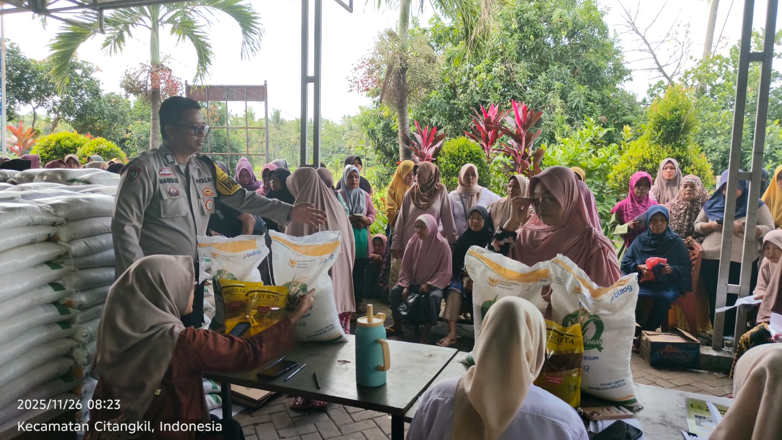 Cilegon - Bhabinkamtibmas Kelurahan Samangraya Polsek Ciwandan Polres Cilegon Polda Banten BRIPKA Marisco melaksanakan pengawalan dan pendampingan dalam penyaluran Bantuan Pangan Pemerintah,Bantuan pangan di Kantor kelurahan Samangraya Kecamatan Citangkil Kota Cilegon, Rabu (26/11/2025).