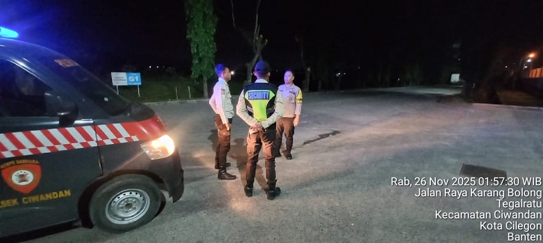 Cilegon - Demi Menjaga keamanan Daerah Hukum Polsek Ciwandan agar tetap kondusif, Personil Polsek Ciwandan Polres Cilegon Polda Banten Melakukan kegiatan sambang kamtibmas Dan Patroli Bersama Security, Rabu (26/11/2025).
