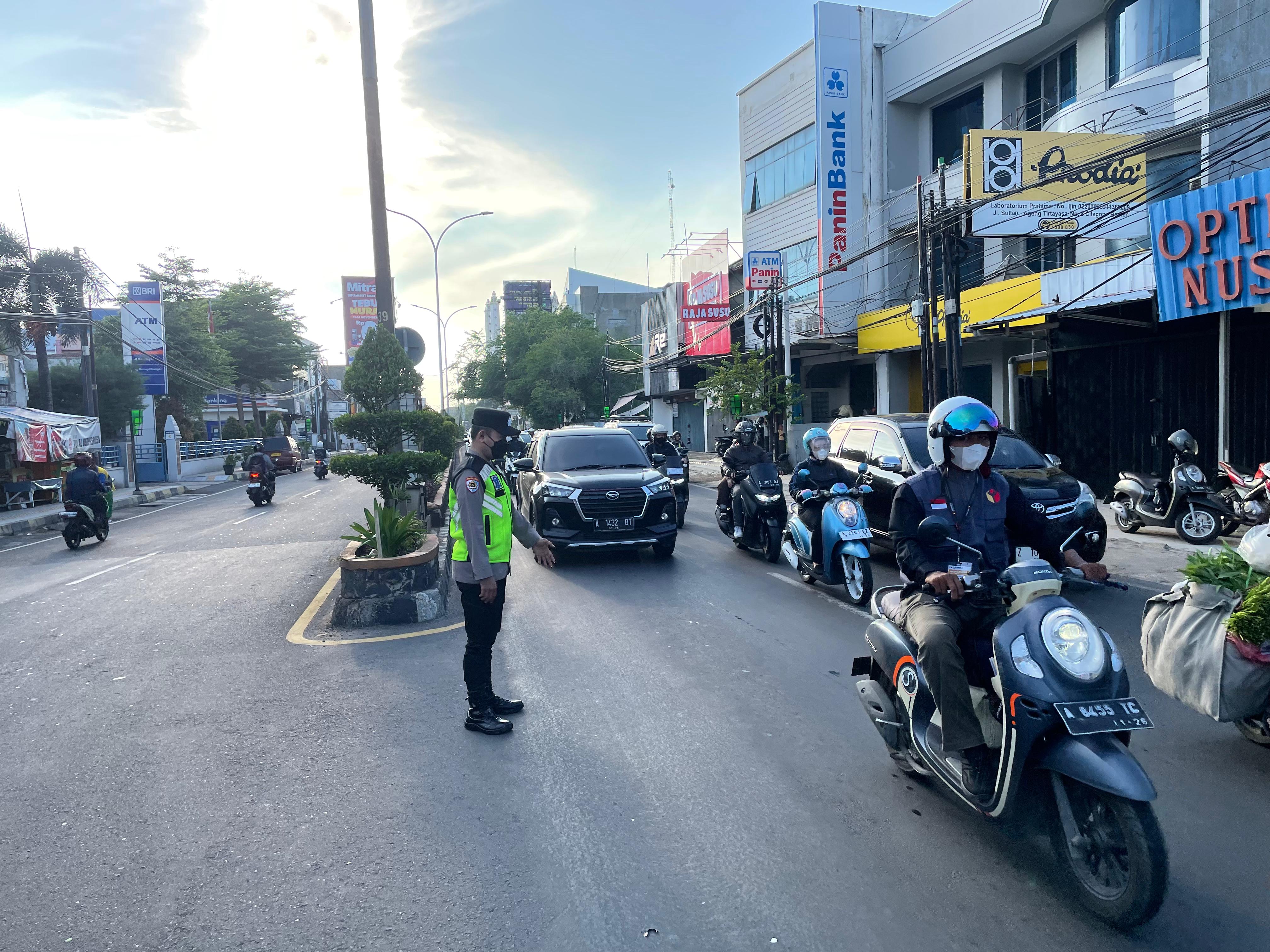 pengaturan arus lalu lintas yang dilaksanakan oleh personil Polres Cilegon