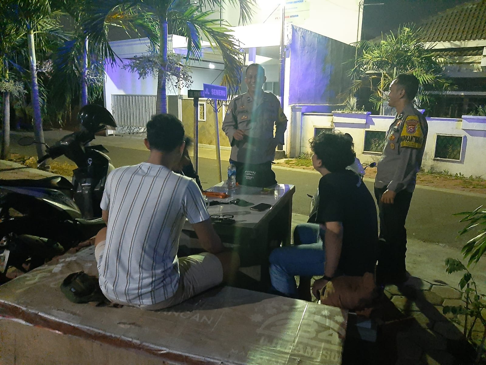 Anggota unit patroli samapta Polsek Cilegon sambangi ronda malam sampaikan pesan kamtibmas*