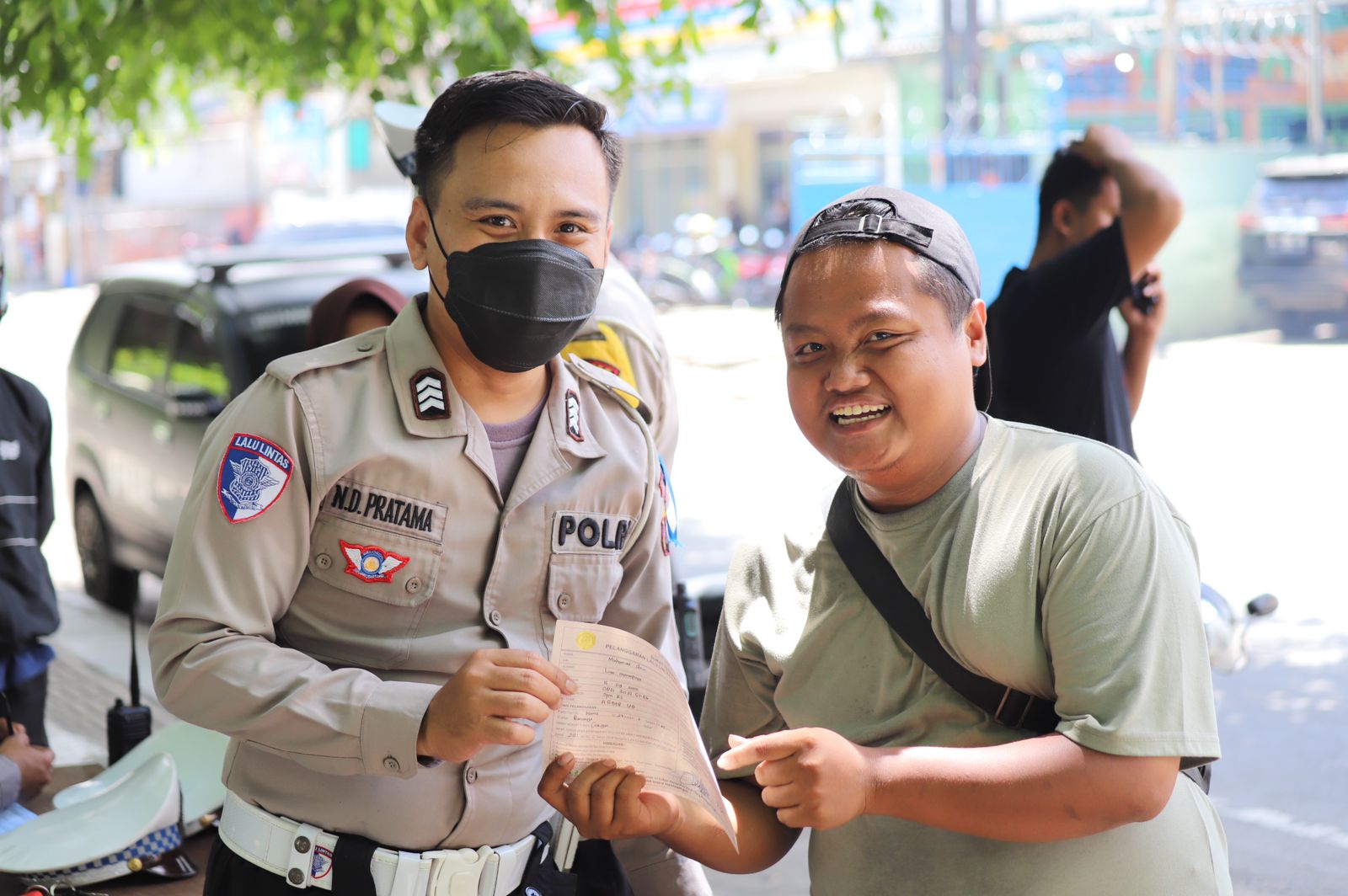 Selain itu, petugas juga melakukan teguran dan penindakan terhadap pengendara yang terbukti melanggar aturan. Penindakan dilakukan secara terukur dan humanis, dengan tujuan meningkatkan kesadaran masyarakat agar lebih berhati-hati dan patuh demi keselamatan diri sendiri maupun pengguna jalan lainnya.