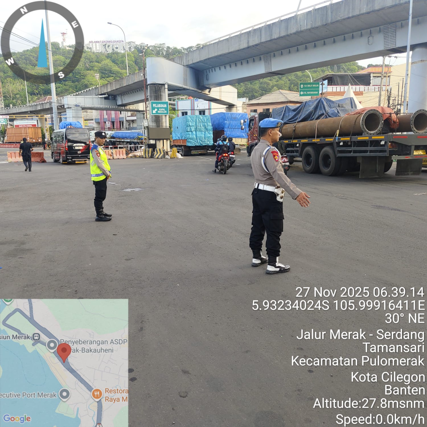 Cilegon - Dalam rangka peningkatan pelayanan prima kepada masyarakat, Kskp Merak Polres Cilegon Polda Banten melaksanakan pengaturan antrian R4 yang akan masuk ke Kapal Ferry di Pelabuhan Merak, Kamis (27/11/2025).