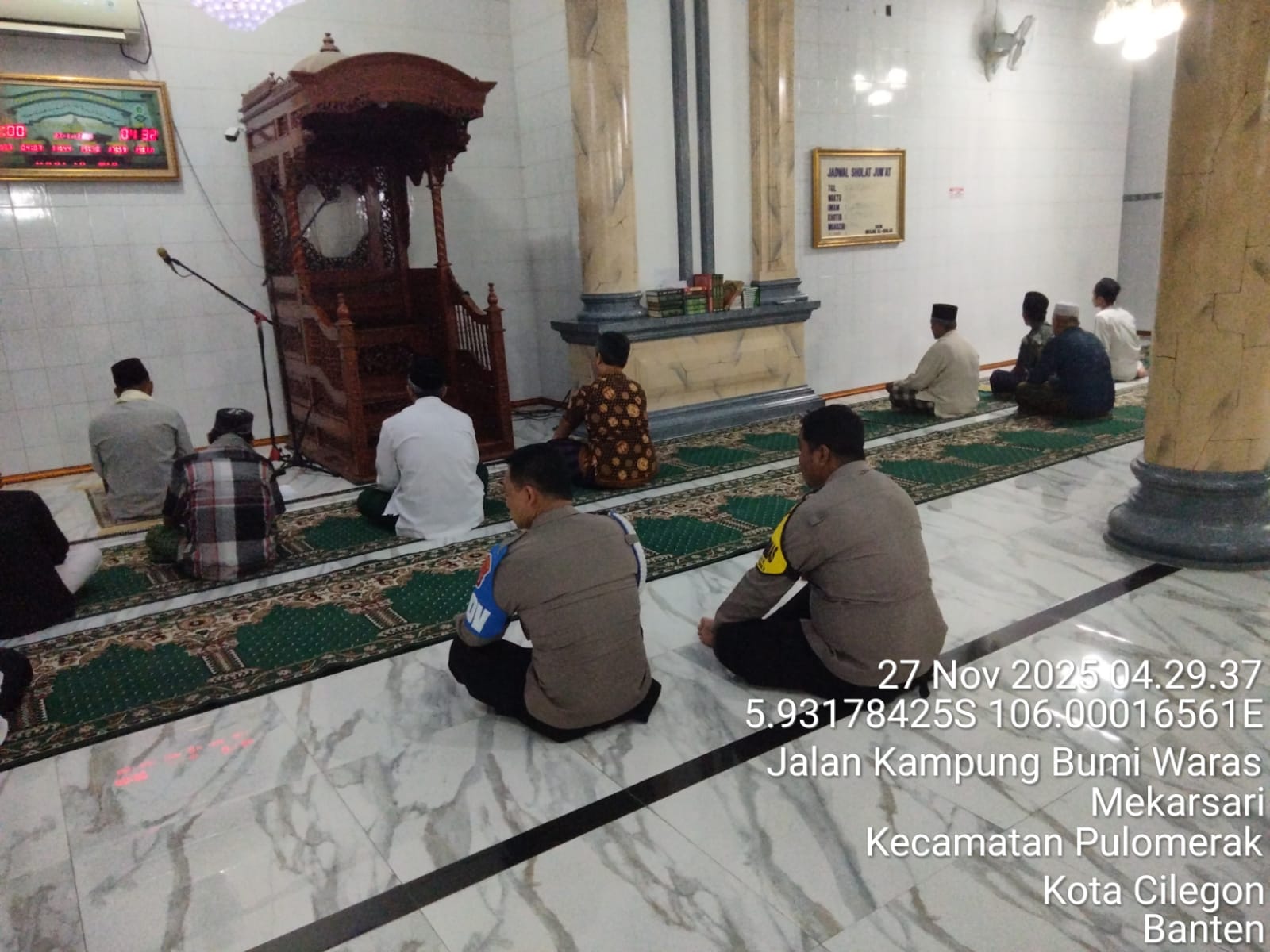 Cilegon – Personil Kskp Merak Polres Cilegon Polda Banten menggelar kegiatan Pembinaan Rohani dengan shalat subuh keliling di Masjid Yang ada Di Daerah hukum Polsek Kp Merak Polres Cilegon Polda Banten, Kamis (27/11/2025).