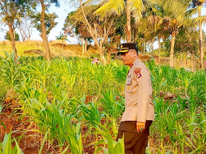 Rawat tanaman Jagung, kanit binmas polsek Pulomerak Tekankan Pentingnya Ketahanan Pangan