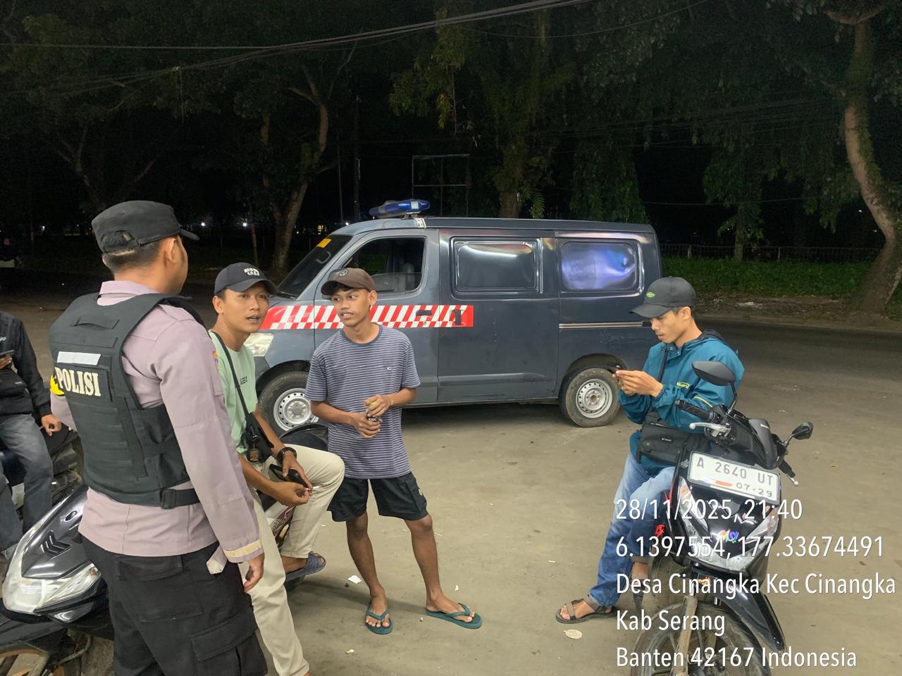 *Polres Cilegon* – Dalam Rangka Pencegahan Kejahatan Jalanan dan Memelihara situasi keamanan dan menjaga serta memberikan rasa aman dan nyaman di masyarakat,Salah satu upaya untuk mewujudkan hal tersebut sebagaimana yang dilakukan oleh Personil Polsek Cinangka Polres Cilegon Polda Banten melaksanakan giat patroli blue light malam hari hingga menjelang pagi, Sabtu (29/11/2025).