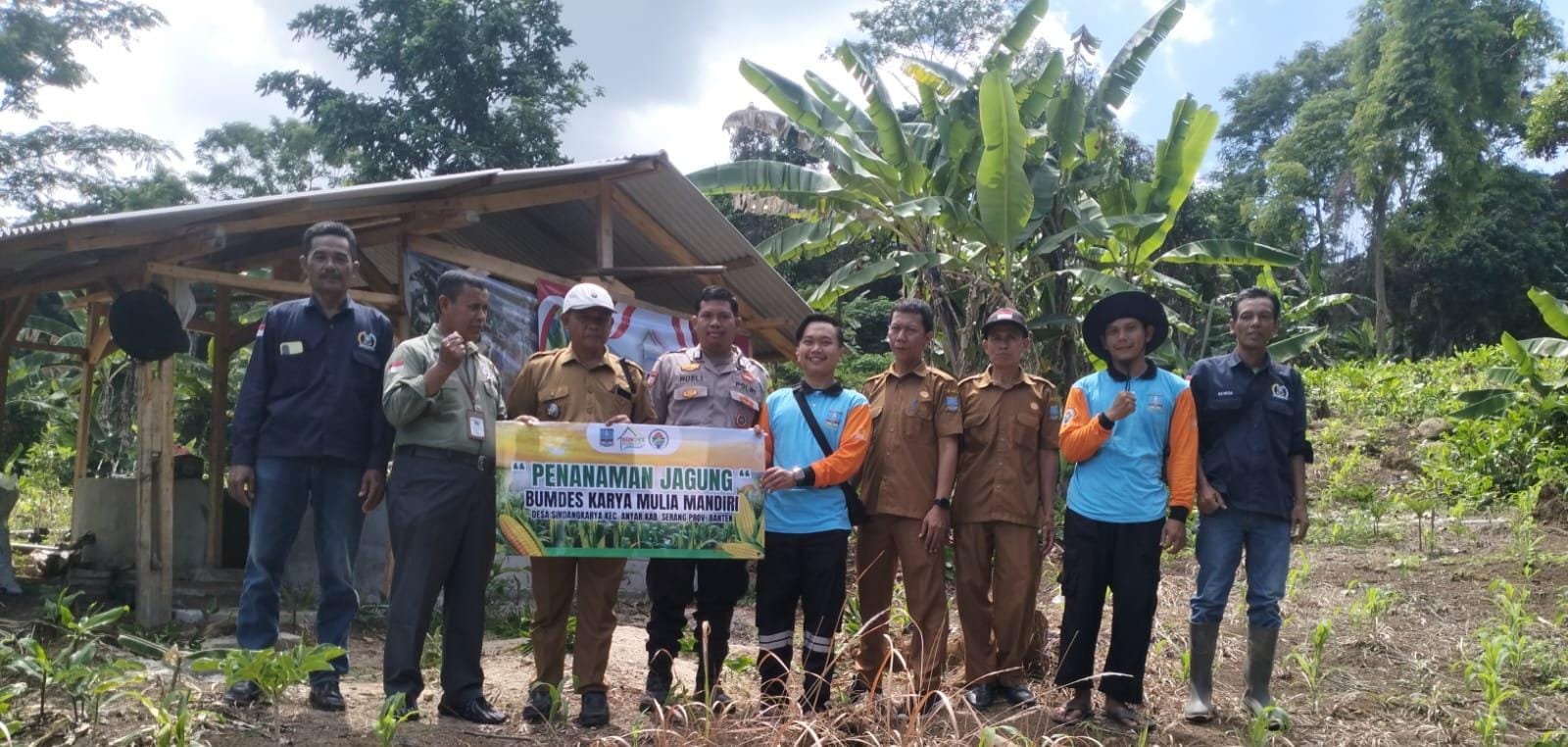 Polsek Anyar Monitoring dan Juga Mengikuti Penanaman Jagung oleh BUMDes Karya Mulya Mandiri