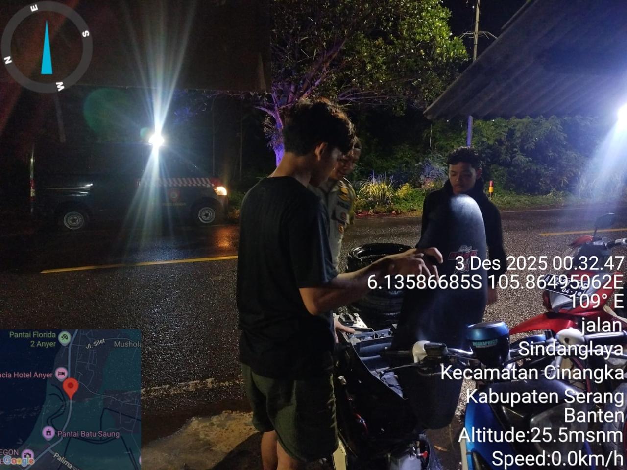 *Polres Cilegon* – Dalam Rangka Pencegahan Kejahatan Jalanan dan Memelihara situasi keamanan dan menjaga serta memberikan rasa aman dan nyaman di masyarakat,Salah satu upaya untuk mewujudkan hal tersebut sebagaimana yang dilakukan oleh Personil Polsek Cinangka Polres Cilegon Polda Banten melaksanakan giat patroli blue light malam hari hingga menjelang pagi, Rabu (03/12/2025).