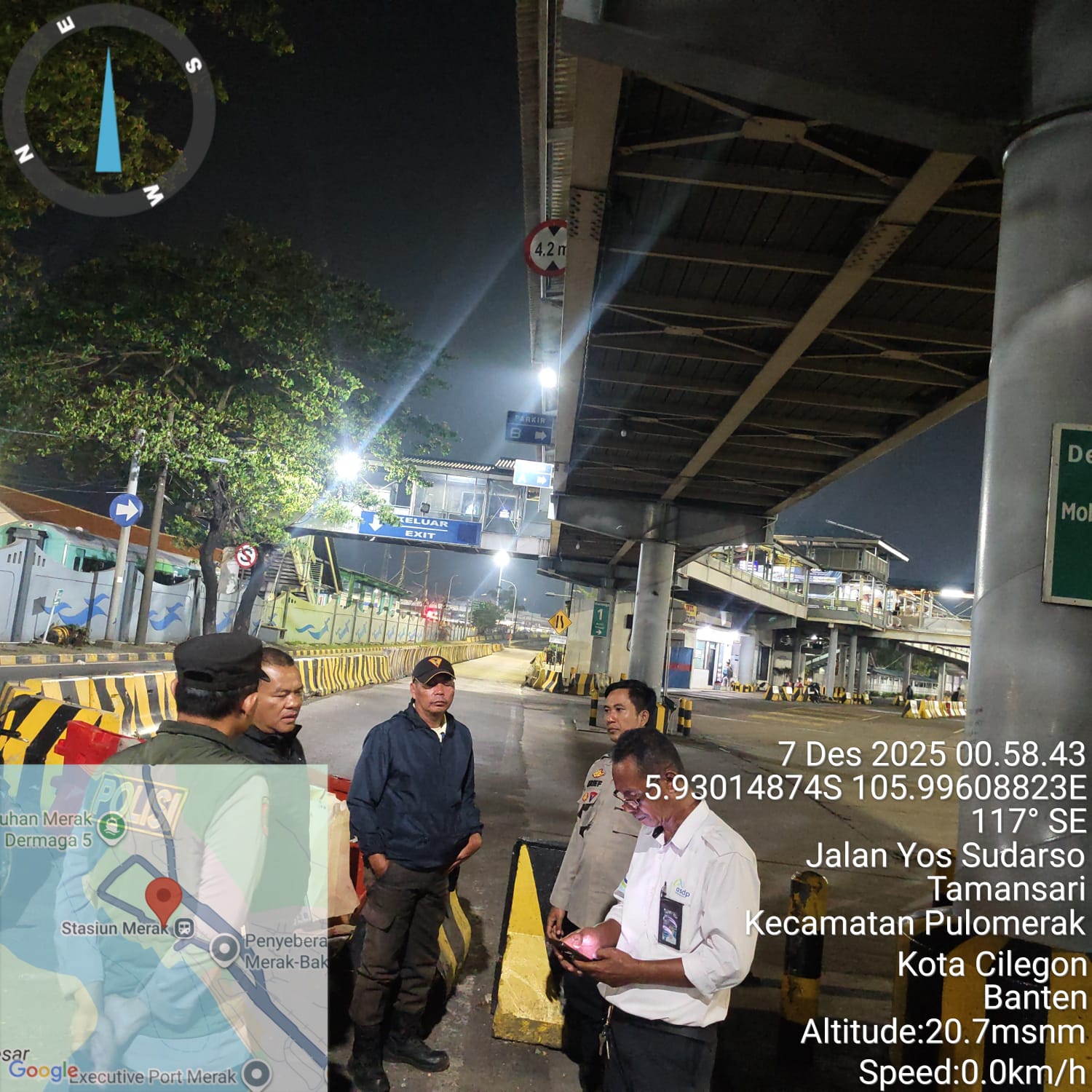 Cilegon - Personil Polsek Kskp Merak Polres Cilegon melaksanakan patroli di kawasan pelabuhan merak memberikan rasa aman dan damai, Minggu (07/12/2025)
