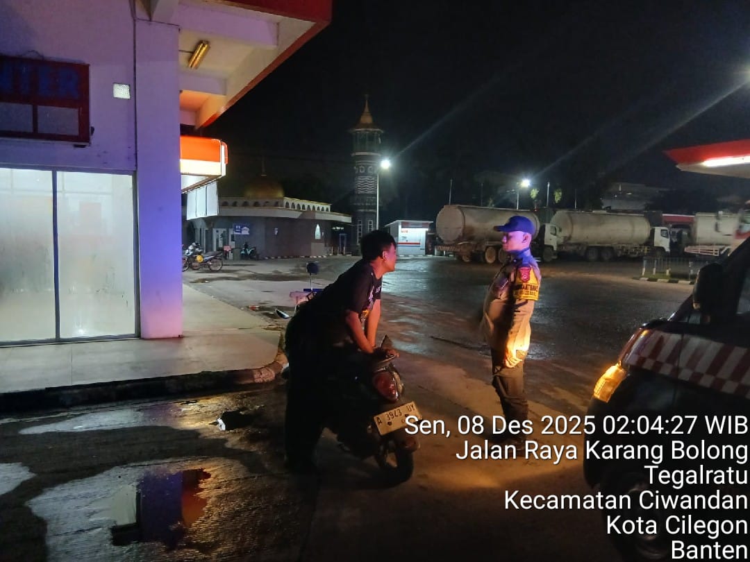 Cilegon - Guna mengantisipasi gangguan kamtibmas di Daerah hukum Polsek Ciwandan, Personil Polsek Ciwandan Polres Cilegon Polda Banten Selalu menggelar patroli malam Kedaerah Pada Jam Yang Dianggap Rawan hingga dini hari, Minggu (07/12/2025).