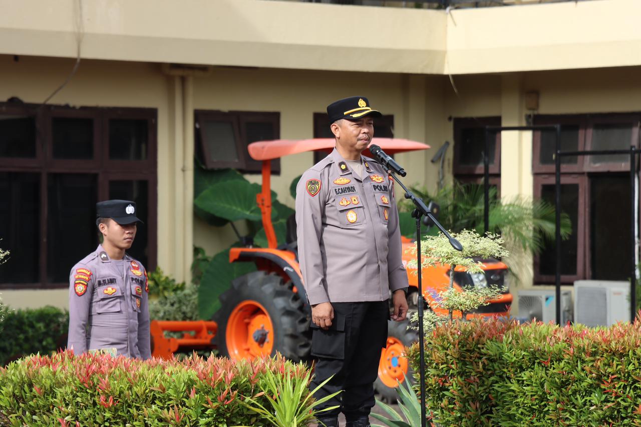Apel tersebut digelar atas perintah Kapolres Cilegon AKBP Dr. Martua Raja Taripar Laut Silitonga, S.H., S.I.K., M.Si., dan dipimpin oleh Kabag SDM Polres Cilegon, Kompol Entang Cahyadi, S.H.