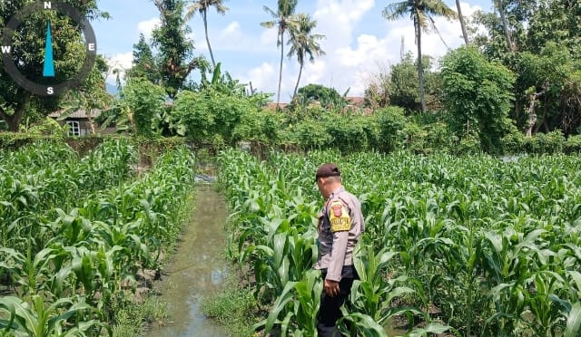 PERTUMBUHAN TANAMAN JAGUNG RUTIN DILAKUKAN PENGECEKAN OLEH PERSONIL POLSEK PURWAKARTA