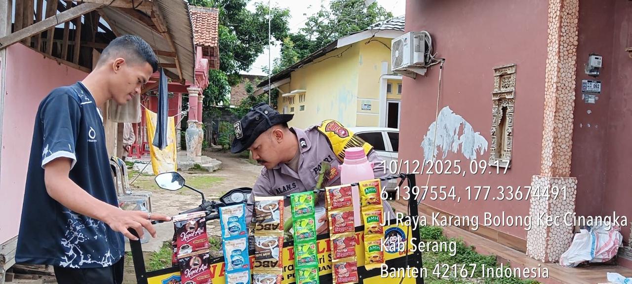 Polres Cilegon ~ Bhabinkamtibmas Polsek Cinangka Polres Cilegon Polda Banten Sambang dan silaturahmi dengan masyarakat merupakan salah satu tugas seorang bhabinkamtibmas untuk mengetahui situasi Kamtibmas Desa binaan dalam menjalin silaturahmi dengan Warga Ds Cinangka di Warung Bhabinkamtibmas, Rabu (10/12/2025).