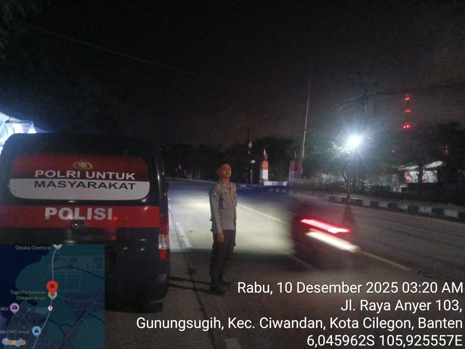 Cilegon - Personil Polsek Ciwandan Ciptakan situasi keamanan dan ketertiban di masyarakat (Kamtibmas) yang aman kondusif Dengan Melaksanakan kegiatan patroli malam guna mencegah gangguan kamtibmas dan kejahatan jalanan, Rabu (10/12/2025).