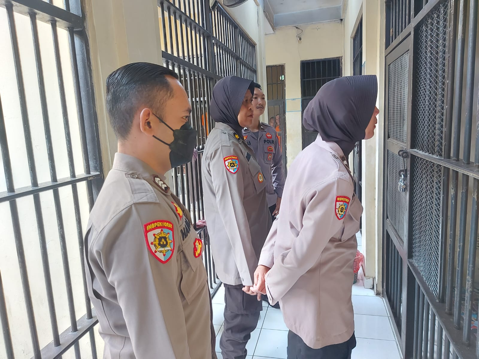 personel seksi pegawasan Polres Cilegon memeriksa Kondisi di Dalam Rutan Polres Cilegon