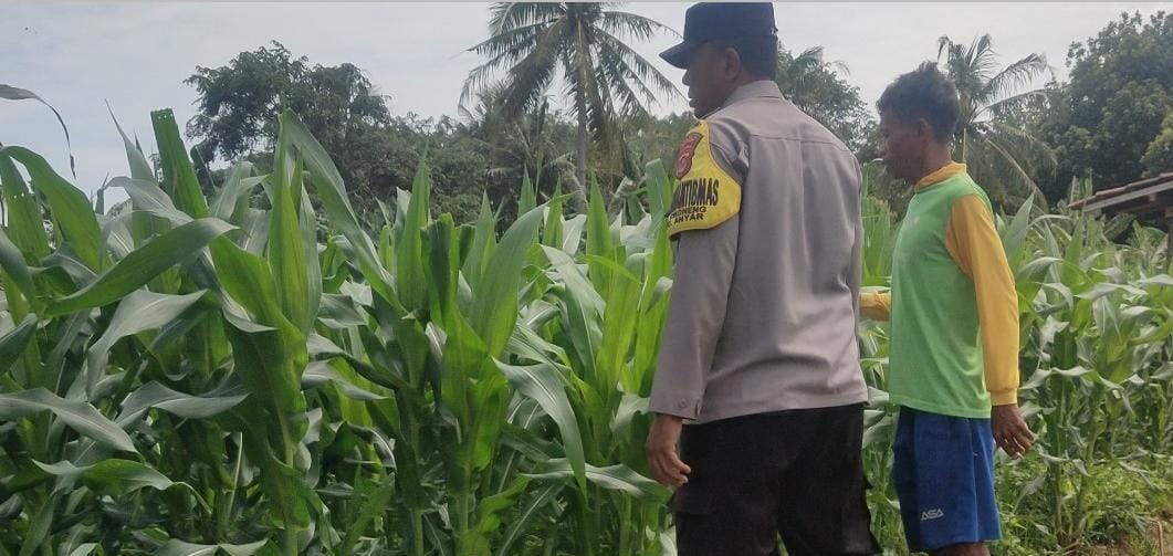 Monitoring Perkembangan Tanaman Jagung Polsek Anyar Sambangi Petani