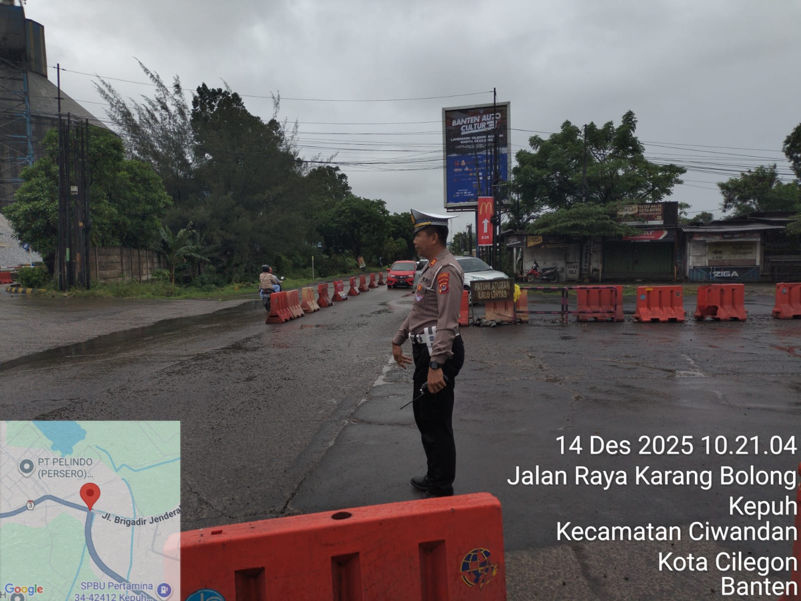 *Cilegon* - Personil Unit Lantas Polsek Ciwandan Polres Cilegon Polda Banten melaksanakan kegiatan monitoring jalur wisata di depan Pos Lantas JLS Ciwandan, Minggu (14/12/2025).