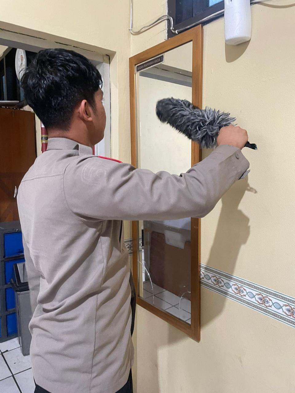 Anggota Bag SDM Polres Cilegon, sellalu melaksanakan aktifitas kegiatan membersihkan ruangan kerja.