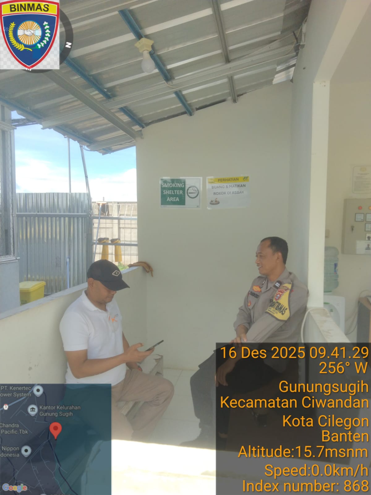 Cilegon - Bhabinkamtibmas Polsek Ciwandan Polres Cilegon Polda Banten Bangun Kemitraan Kamtibmas Dan Datangi Petugas security Meminta Agar Dapat Membantu Tugas-tugas Polri Dalam Menjaga Harkamtibmas, Selasa (16/12/2025).