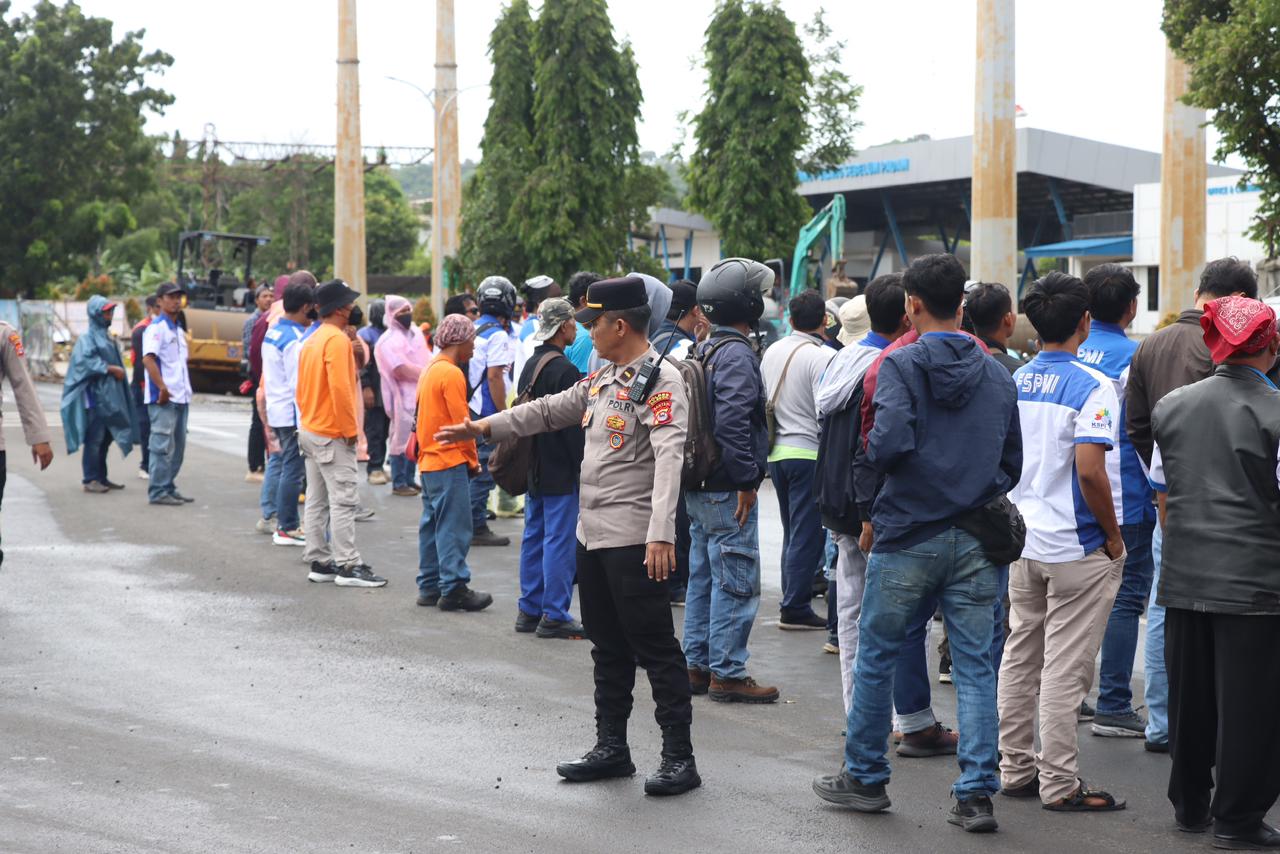 Polres Cilegon Hadir Kawal Penyampaian Aspirasi Buruh FSPMI Secara Damai