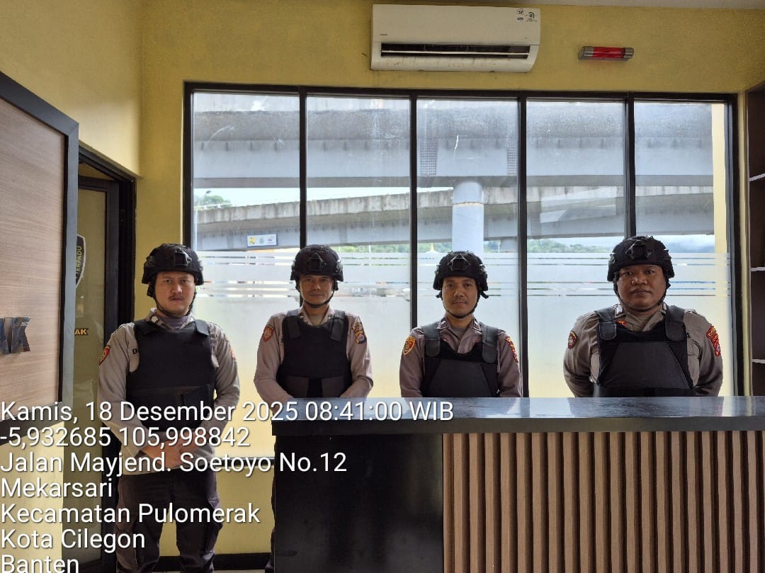 Cilegon - Personel piket jaga Polsek Kskp Merak Polres Cilgon Polda Banten melaksanakan siaga 1 Polsek pelaksanaan Sispam Mako oleh piket siaga dipimpin oleh Kspk Polsek Kskpy Merak Polres Cilegon Polda Banten, Kamis (18/12/2025).