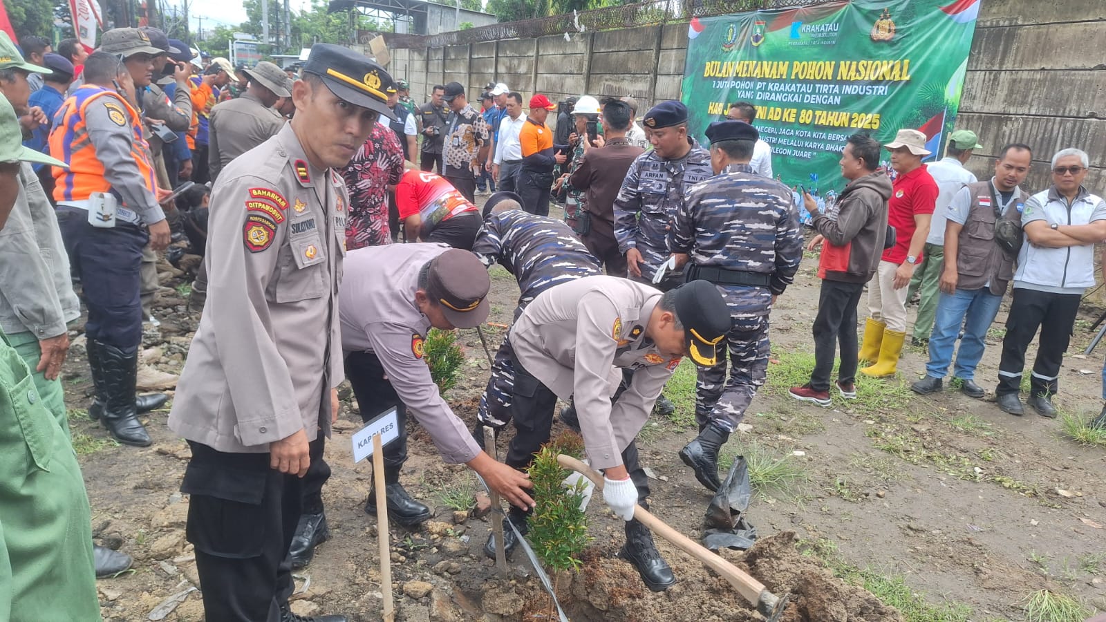 Cilegon - Dalam rangka memperingati Hari Juang TNI AD ke-80 Tahun 2025, Kodim 0623 Cilegon melaksanakan kegiatan Karya Bakti Penanaman Pohon di lahan milik PT. KTI samping PT. SUJ Jl. Raya Anyer Kel. Tegalratu Kec. Ciwandan Kota Cilegon, Kamis (18/12/2025).